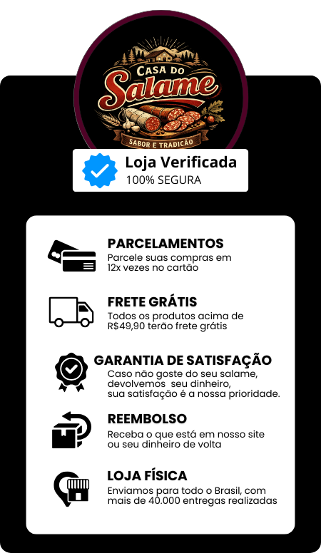 Trabalhamos com produção cuidadosa, receitas tradicionais e matéria-prima selecionada, respeitando o tempo, o sabor e a cultura de quem faz salame há gerações. Cada peça carrega história, identidade e aquele gosto marcante que não se encontra em qualquer lugar.